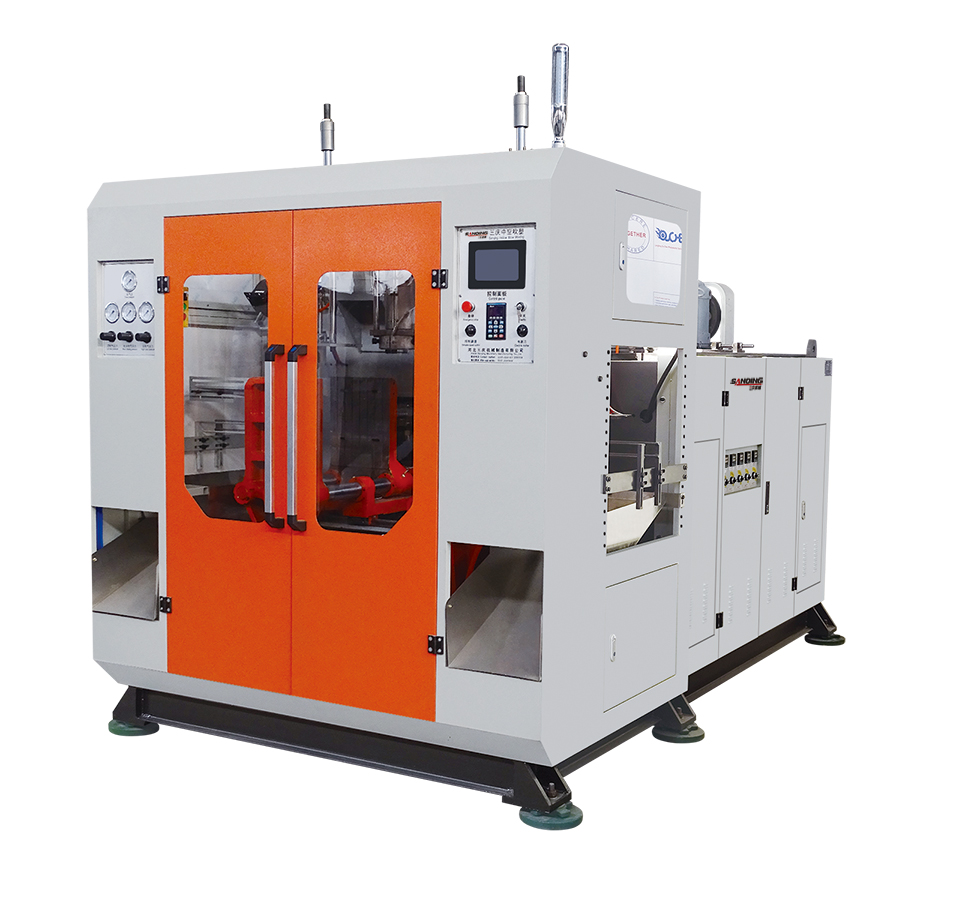 此機集擠出、合模、吹氣、脫模、切口、去料尾為一體實(shí)現了真正的全自動(dòng)。原料PE、PP等。主要有PLC和人機介面組成,彩色觸摸式操作屏,自動(dòng)上料系統。機頭有單、雙、三、四、五模頭。采用氣動(dòng)機械鎖模。高效節能。